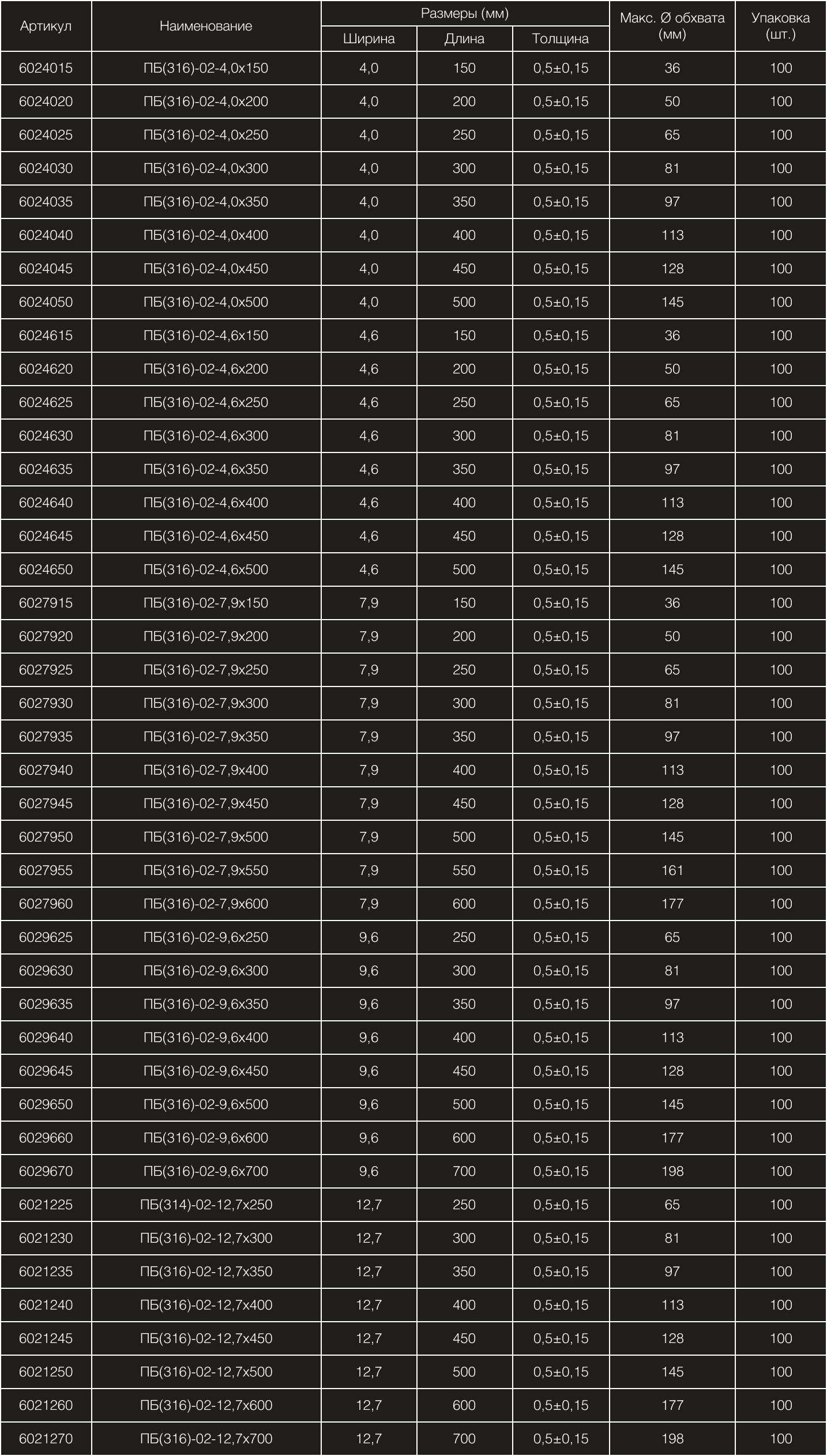 Хомуты-стяжки бандажные AISI 316 «ПБЛ» без покрытия из нержавеющей стали лестничного типа