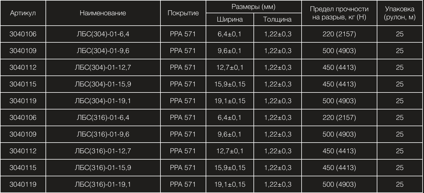 Лента бандажная «ЛБС» с полимерным покрытием PPA 571 из нержавеющей стали